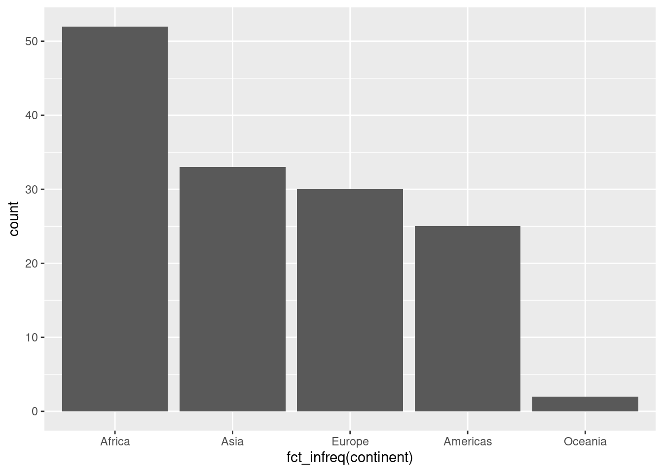 ggplot(data =dane2007, aes(x = fct_infreq(continent))) +