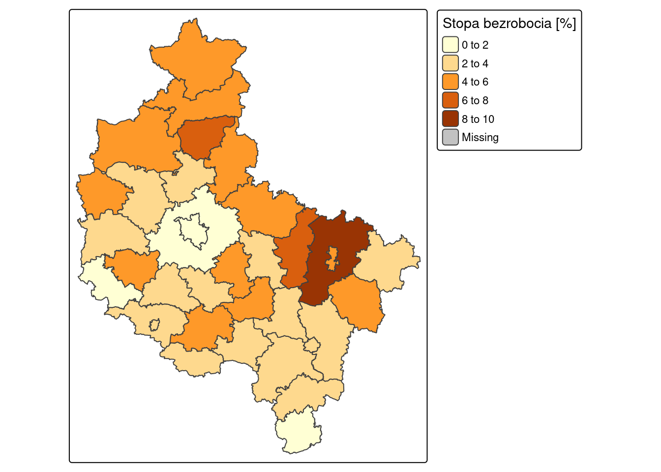 fill.legend = tm_legend(title = "Stopa bezrobocia"),