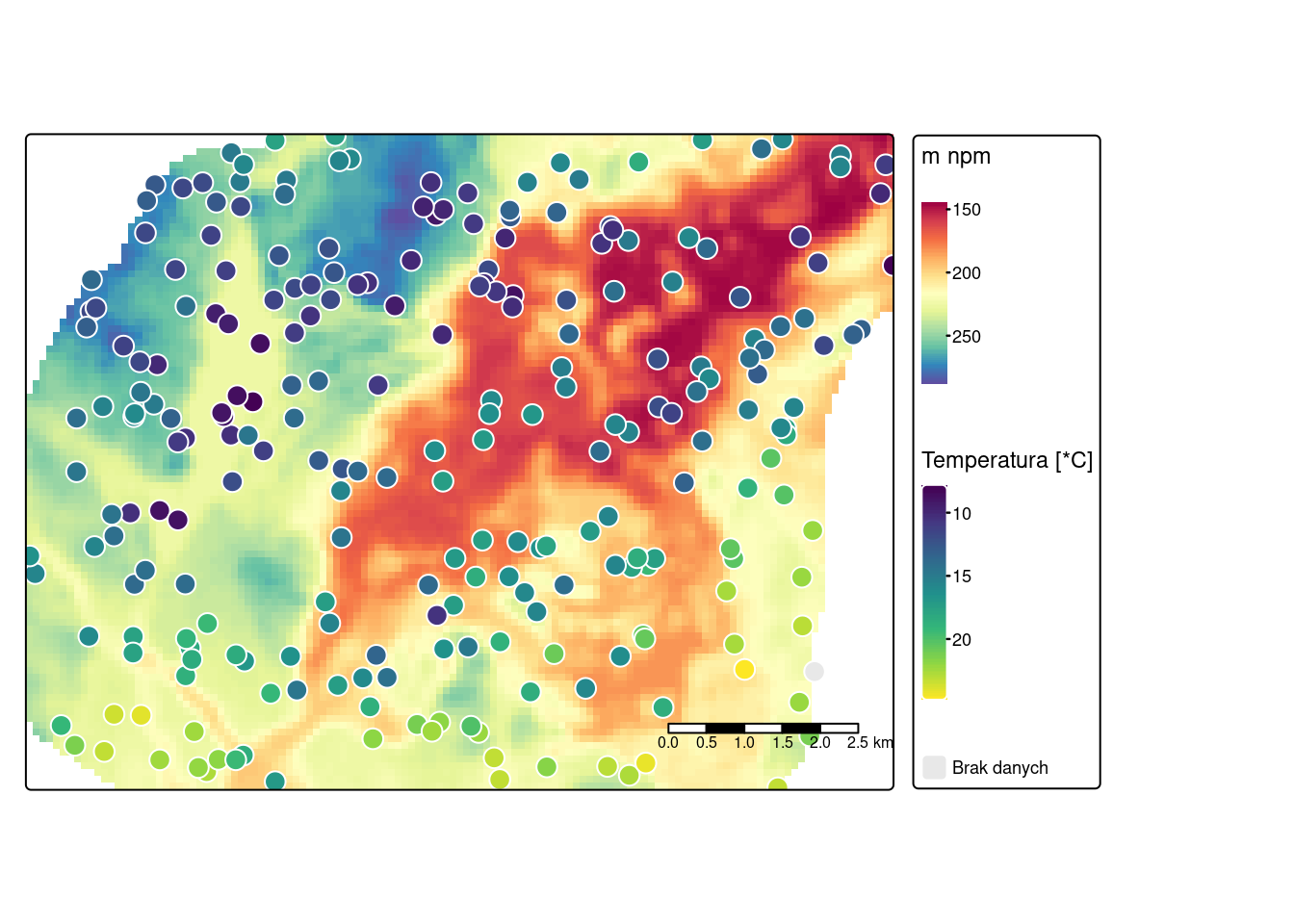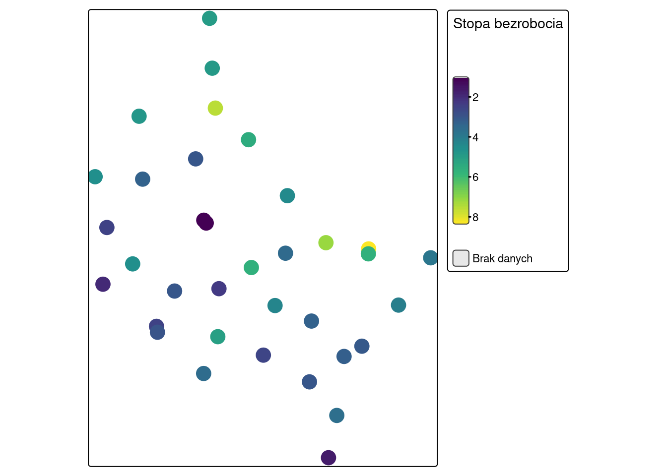 fill.scale = tm_scale_continuous(values = "viridis", label.na = "Brak danych"),