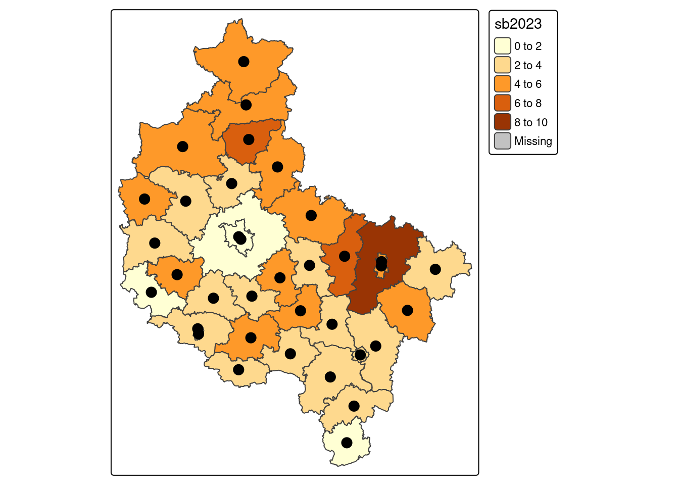 tm_dots(fill = "sb2023",