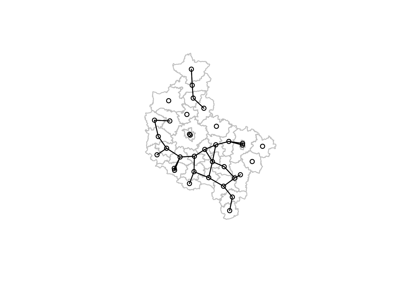 plot(powiaty_nb_d, coords = st_coordinates(powiaty_cen), add = TRUE, lwd = 1.5)
