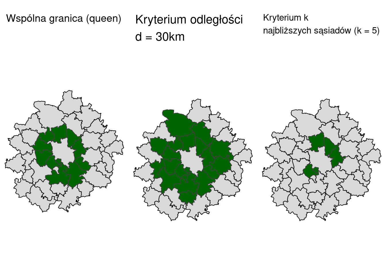 Sąsiadów przestrzennych można definiować na kilka sposobów.