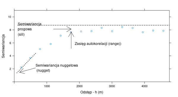 - Sill - semiwariancja progowa - oznacza wariancję badanej zmiennej.