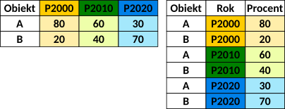 Dane w tabeli mogą być zapisywane w układzie długim lub szerokim.