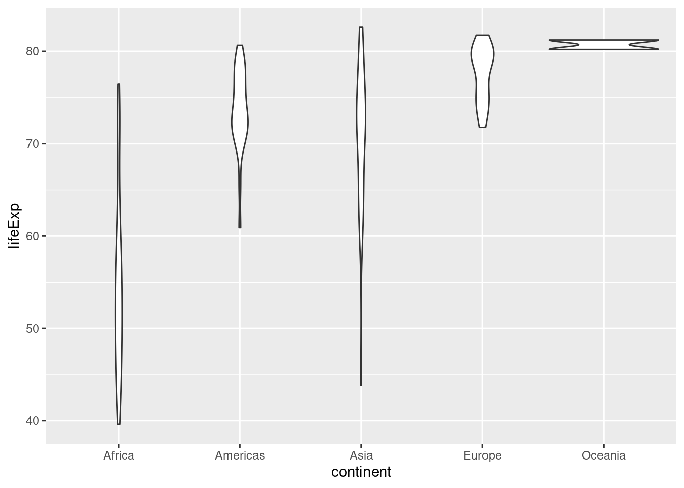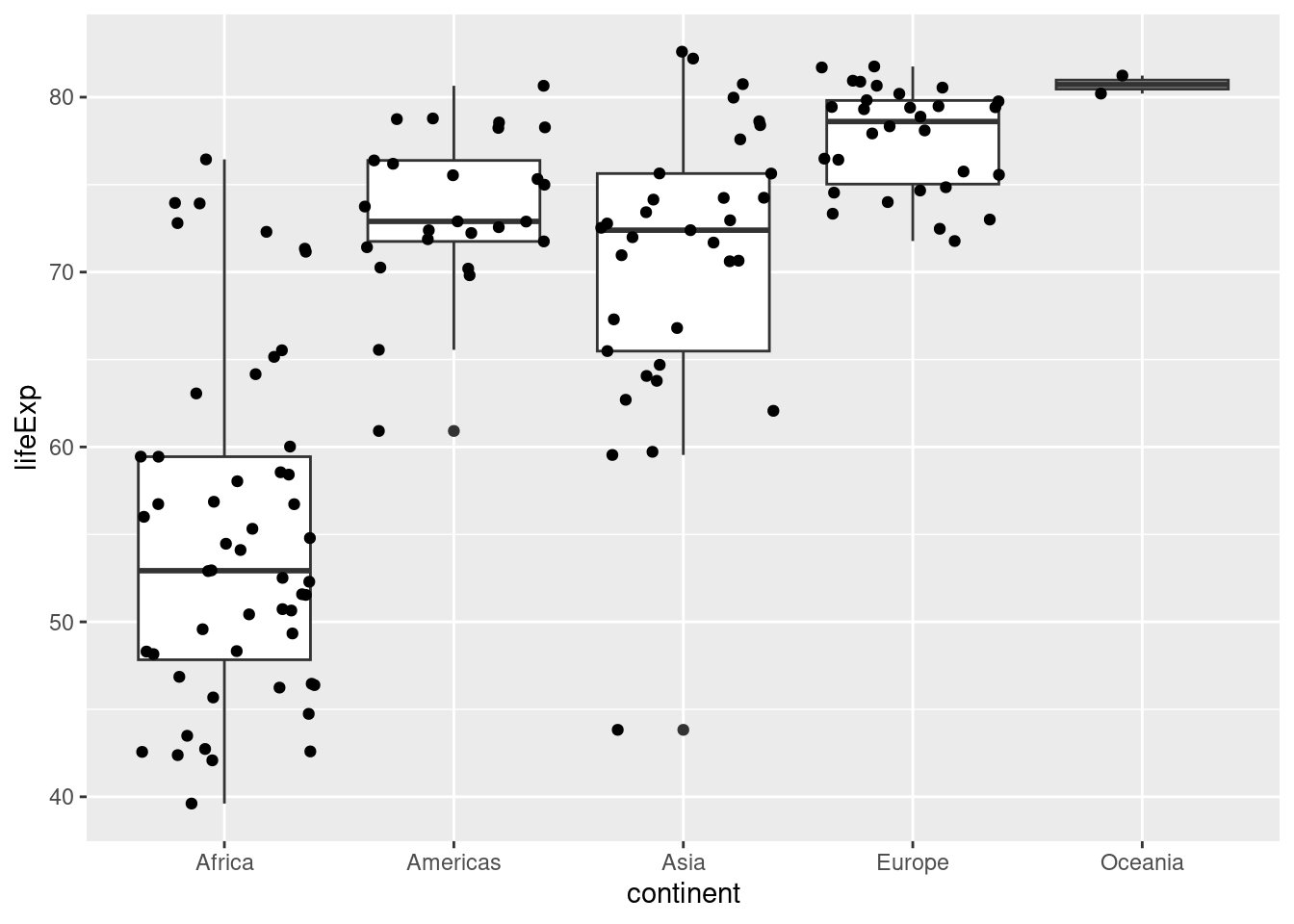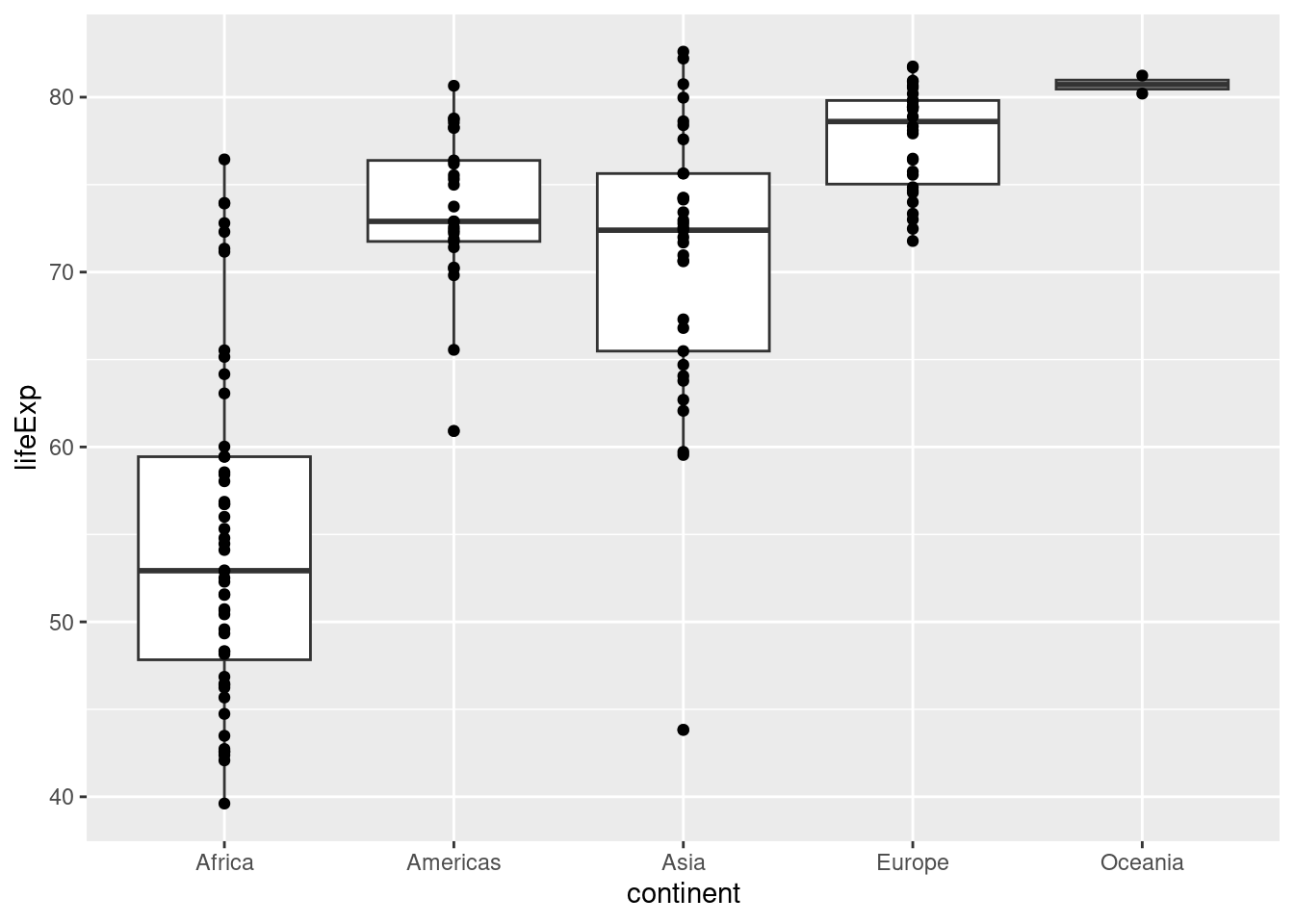 p <- ggplot(data = dane2007, aes(x = continent, y = lifeExp)) +