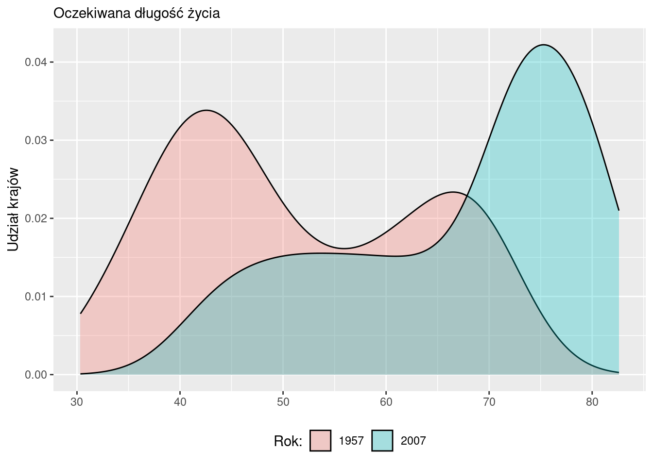 labs(y = "Udział", subtitle = "Oczekiwana długość życia (2007)", x = NULL)
