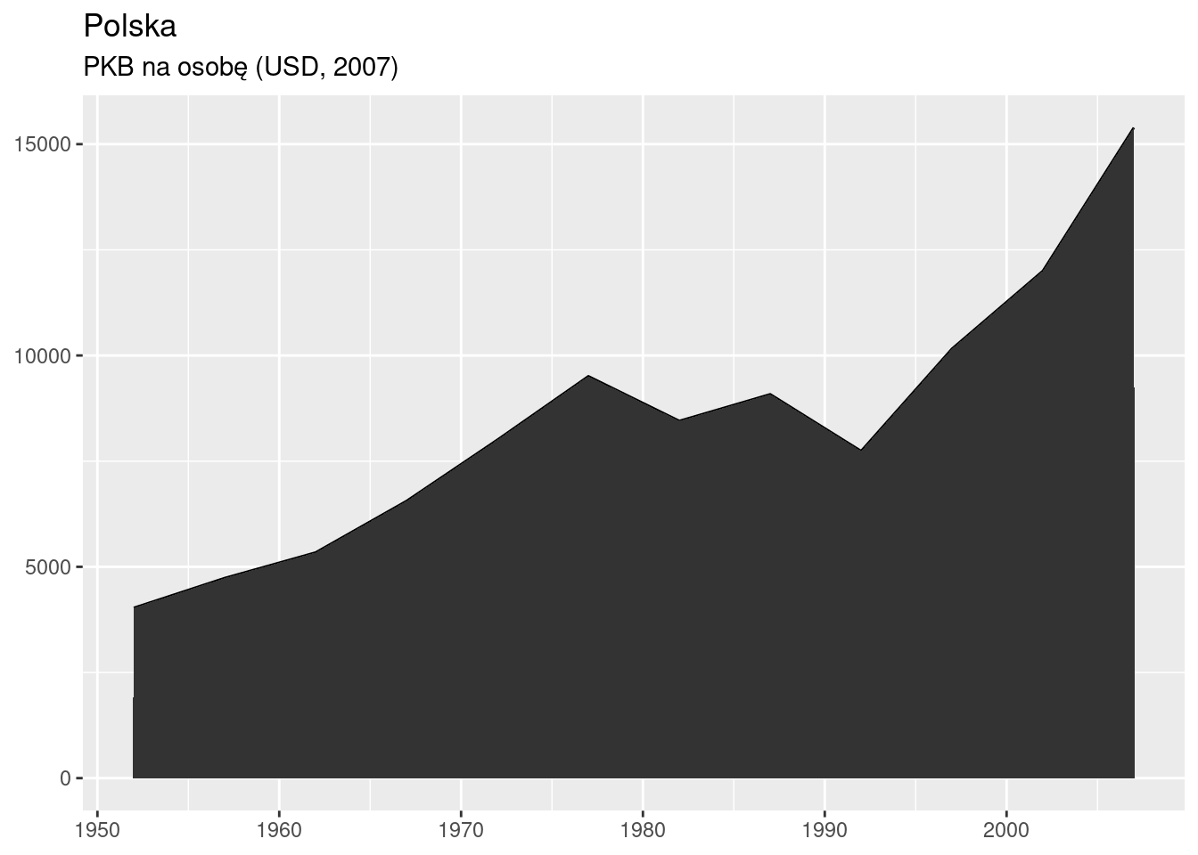 labs(x = NULL, y = NULL, title = "Polska", subtitle = "PKB na osobę (USD, 2007)")