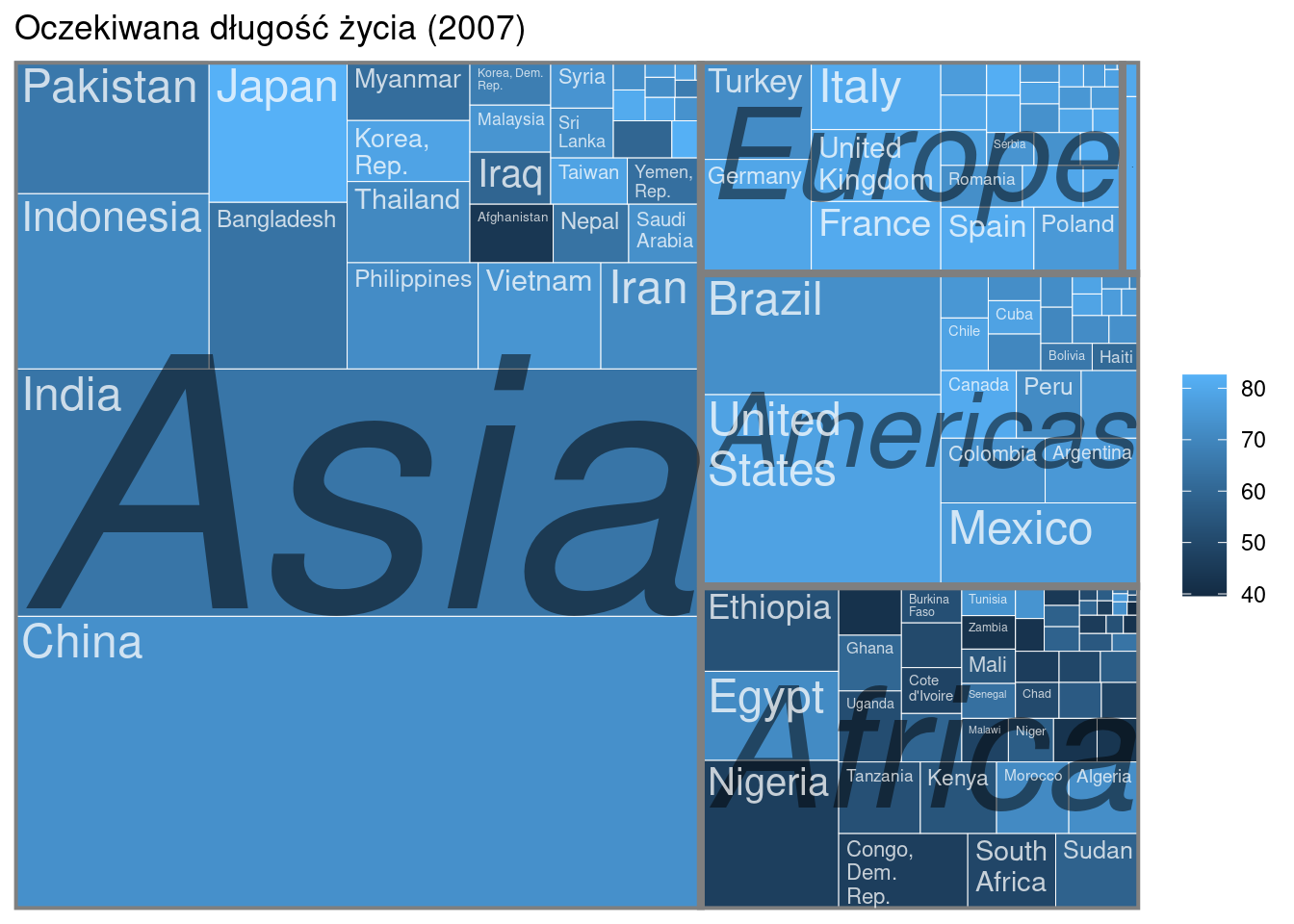 ggplot(dane2007, aes(area = pop, fill = lifeExp,