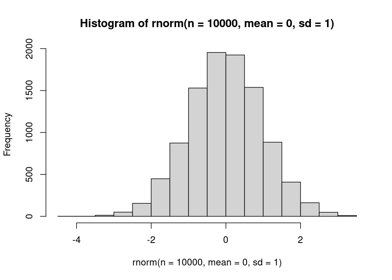 hist(rnorm(n = 10000, mean = 0, sd = 1))