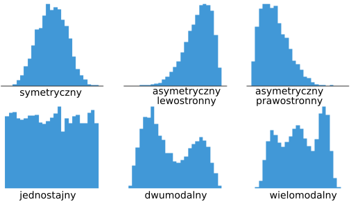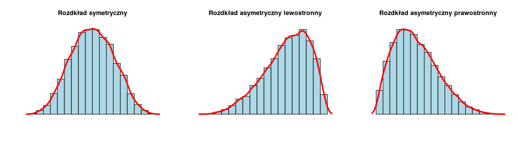 - skośność < 0 - rozkład asymetryczny lewostronnie (rozkład ma dłuższy lewy ogon)