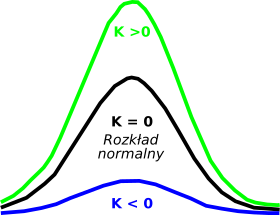 - K < 0 - rozkład bardziej spłaszczony niż rozkład normalny.